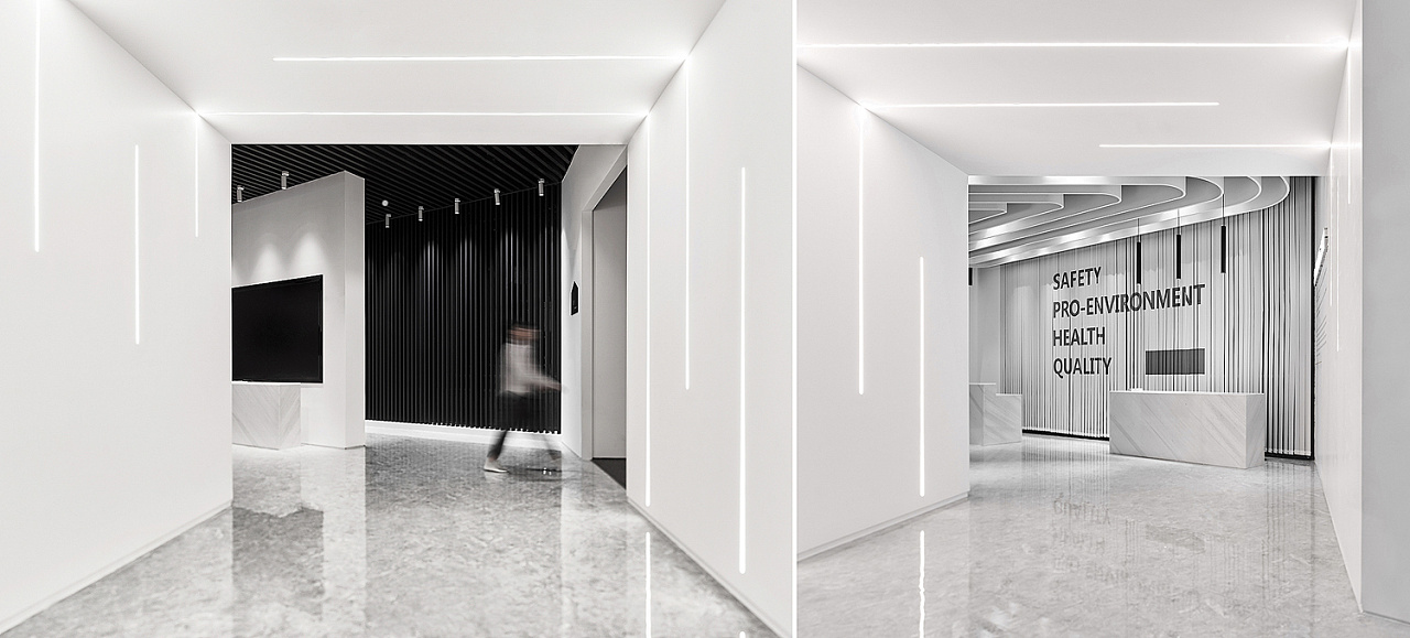 衣食住行是组成家的要素,同时也可以涵盖EMTEK的业务范围,在EMTEK展厅设计中,众舍试图以“家”的概念营造空间。品牌检测展品在四个不同的“家“中展示,在原本通敞空洞的办公楼间层植入了一个“错落有致,屋舍俨然“的展示空间