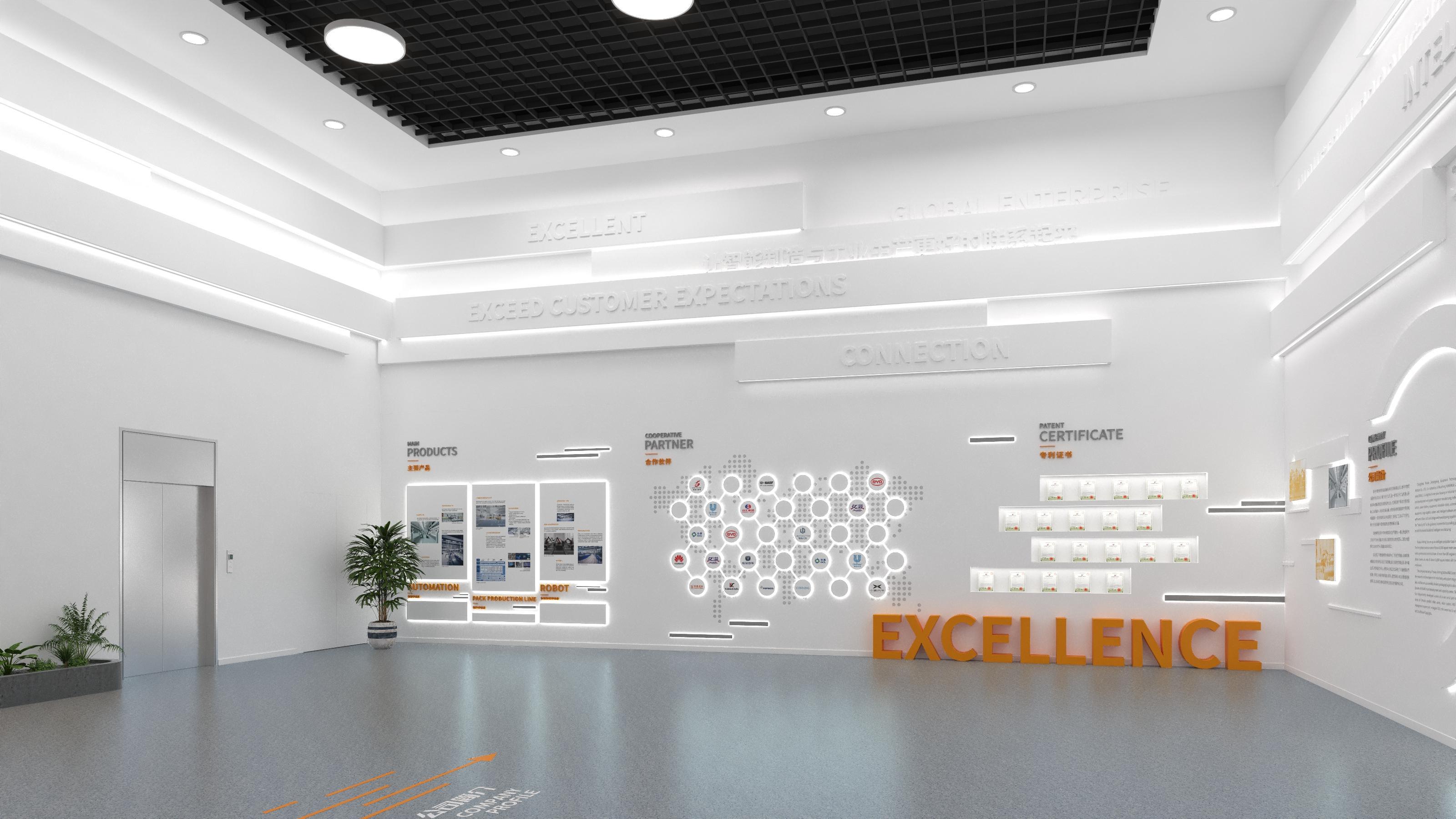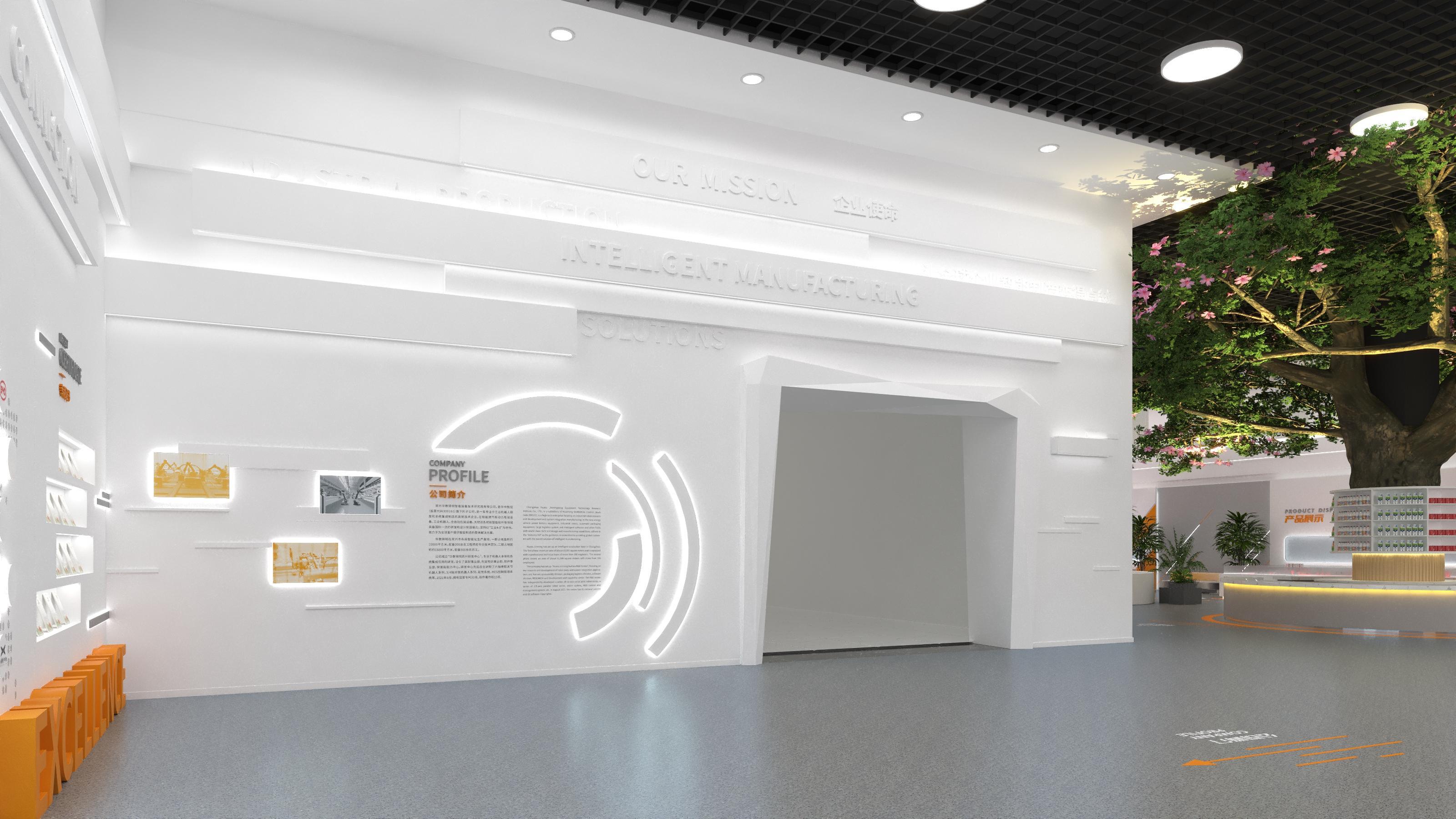 创作思路:本案以华数锦明logo为创作核心元素,通过提炼其造形特点再抽象化处理,创作出字母“h”图形,将此图形运用到外立面,既能体现企业文化,同时具有后现代主义风格的设计,在视觉上也更有特点和视觉冲击力。