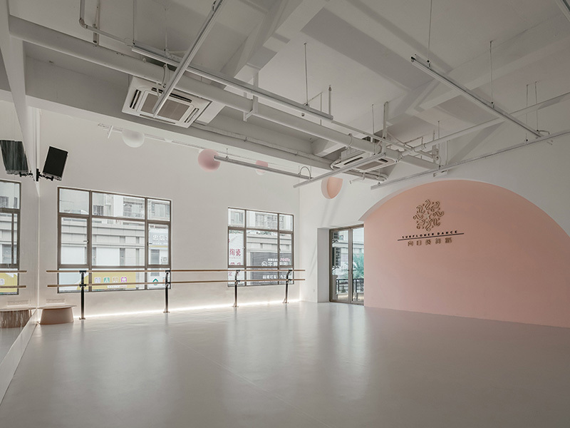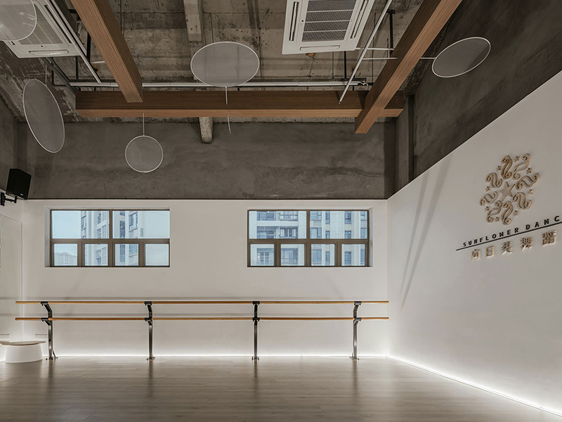 以「向日葵」为品牌概念衍生,设计师提取了明黄色调以及花瓣的序列感为设计灵感,希望创造一个品牌形象鲜明又充满童趣的儿童舞蹈、艺术教育空间。