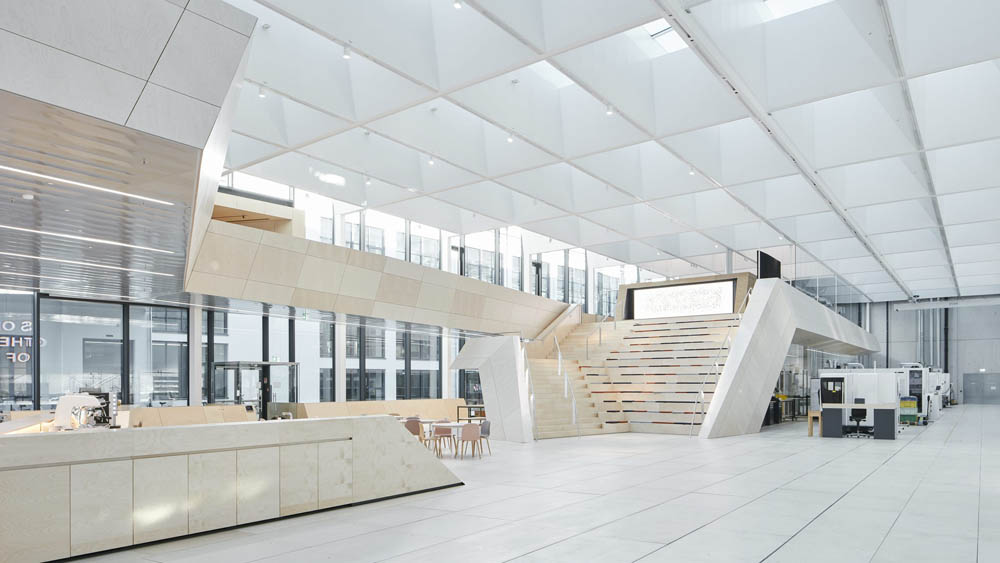 设计主要侧重于创造一个鼓励创造力的引人入胜和鼓舞人心的空间,而不是作为制造核心部分的物理生产过程。设计师的一个主要焦点是日光的整合,这使得水晶闪闪发光。