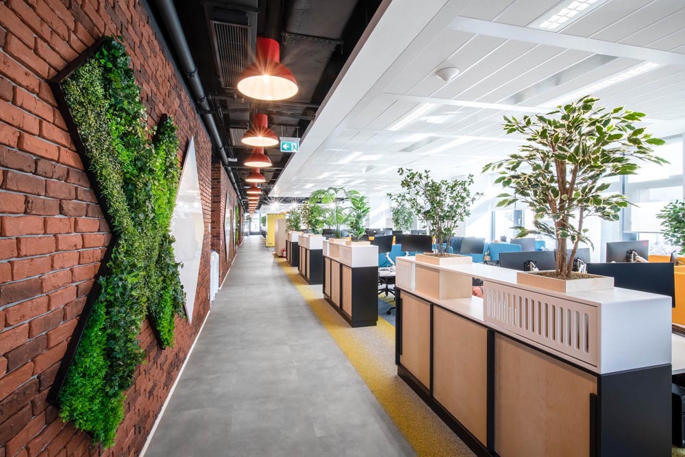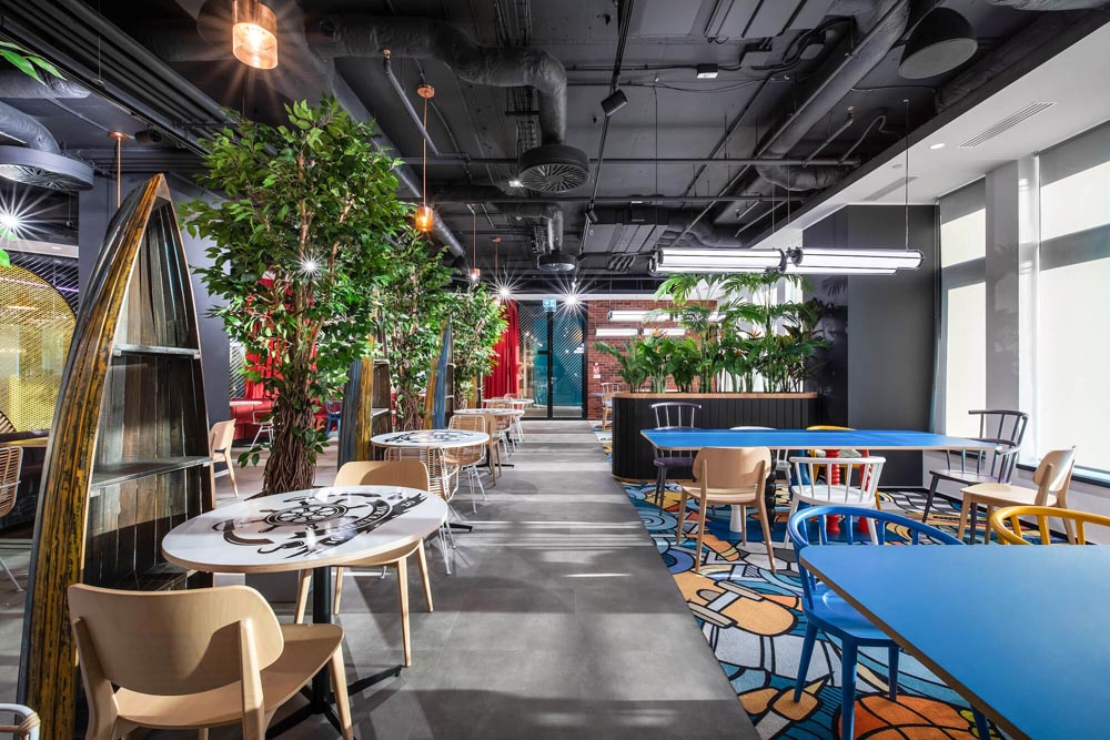 游戏场景、开放协作多元、绿植、休闲工业风,空间以鲜明的色彩配,以特别定制的照明设备加以强化和凸显,为员工塑造一个亲和舒适、充满创意的工作环境。