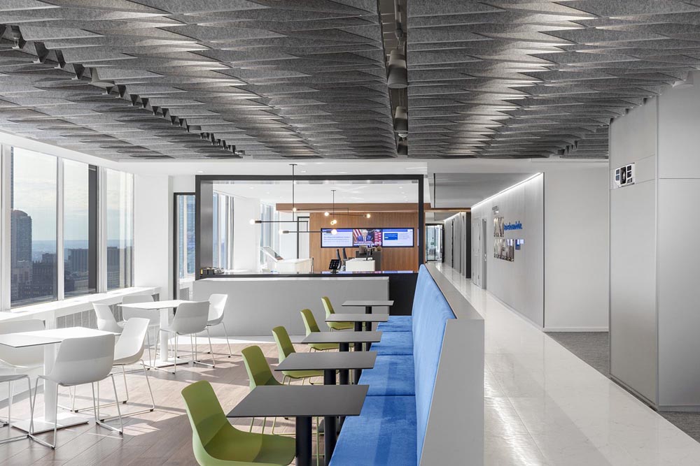 科技、前沿科技应用、开放协作多元、品牌诠释、简约摩登、原木、蓝色,设计团队将移动应用等前沿技术兼容进各大型和小型的会议室中。同时主会议区域兼做工作区来使用,打造透明、技术和协作文化的空间。