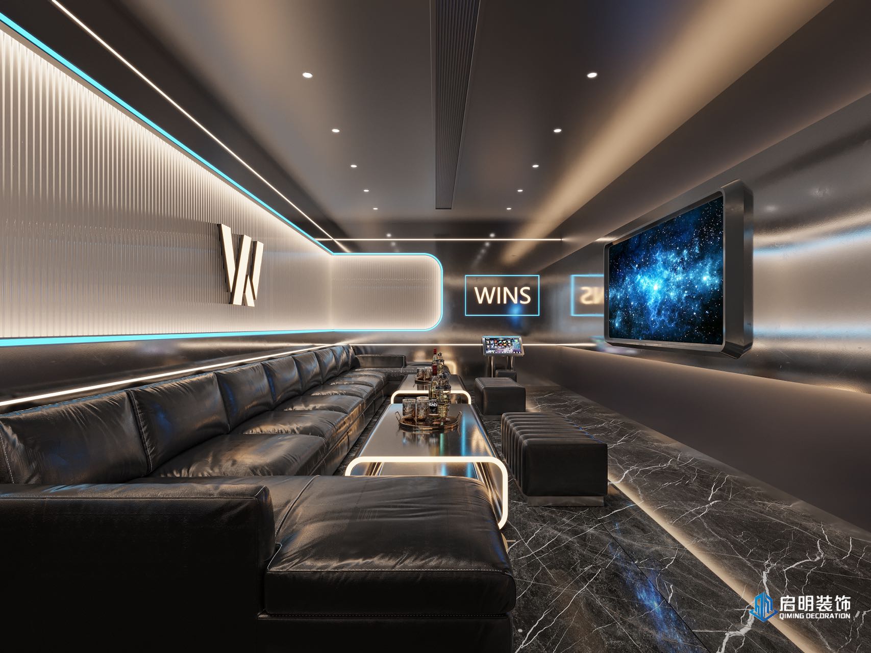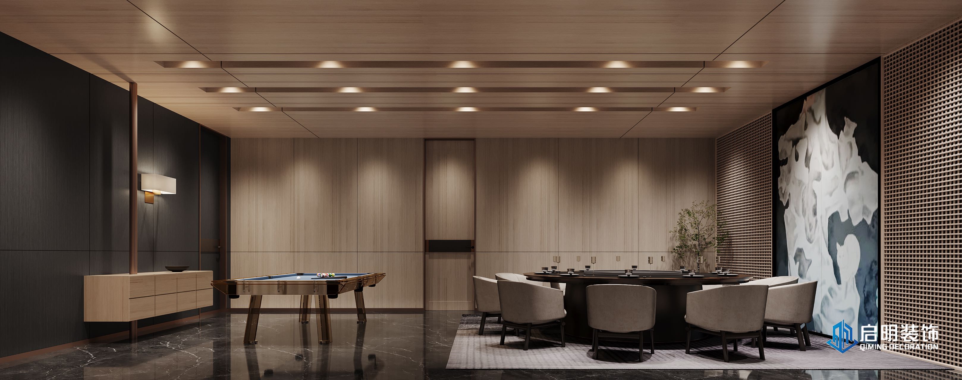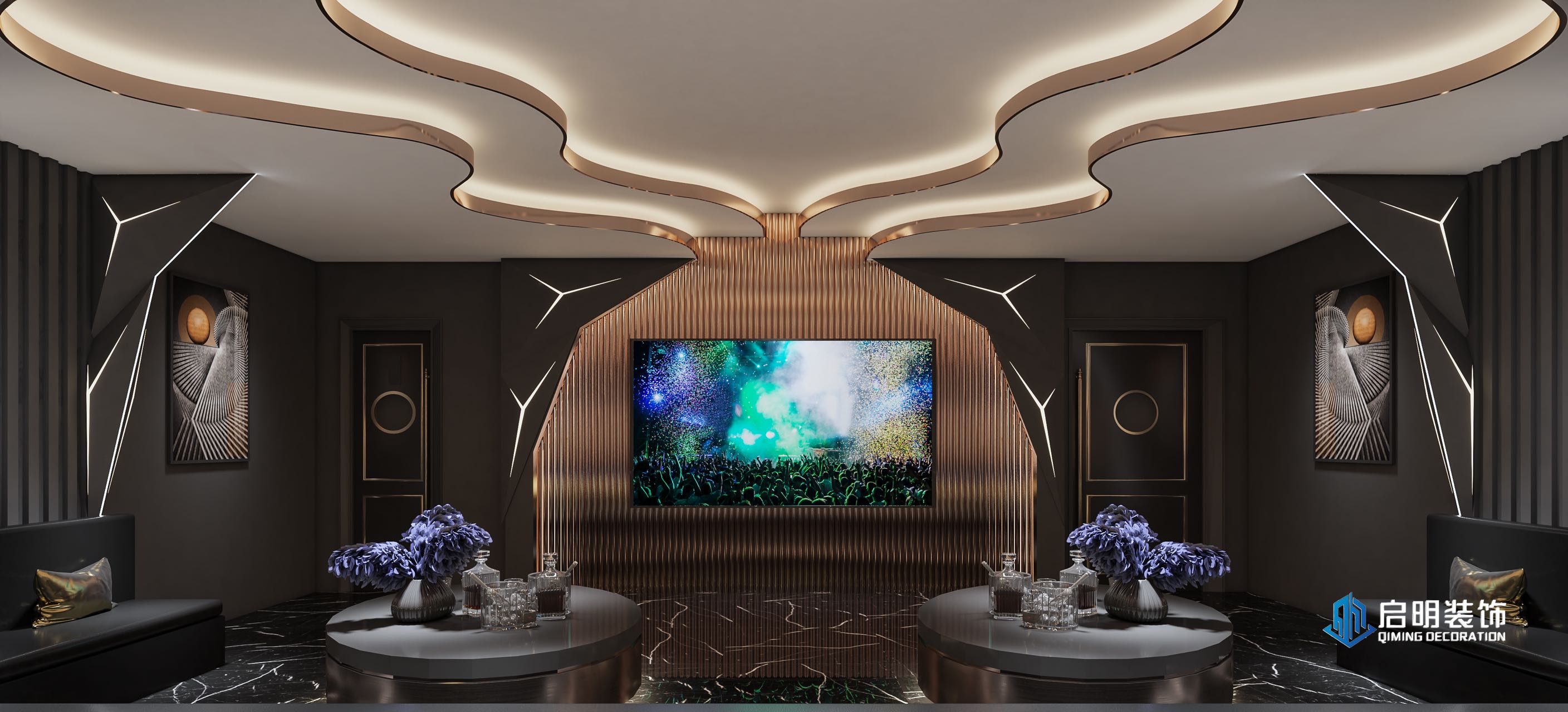 整体高端定位,私人会所作为尊贵的社交场所,应具备高端、典雅的氛围。在设计中,我们注重品质、档次和品味,以满足高层次人群的需求。 注重艺术氛围的营造,运用艺术作品、装饰品等元素,彰显会所的文化底蕴。此外,还通过空间布局、家具选用等方式,体现业主的审美观。 设计KTV的过程中,关注每一个细节,从墙面、地面、天花板到家具、灯具等,都精心设计。针对不同主题选用不同的高品质的装饰材料和家具,以提升会所的整体品质。 KTV区域采用隔音材料,保证客户在唱歌时的私密性。餐桌区域则注重餐饮体验,选用高品质的餐桌、椅子和餐具,给客户营造出舒适、高雅的用餐环境。