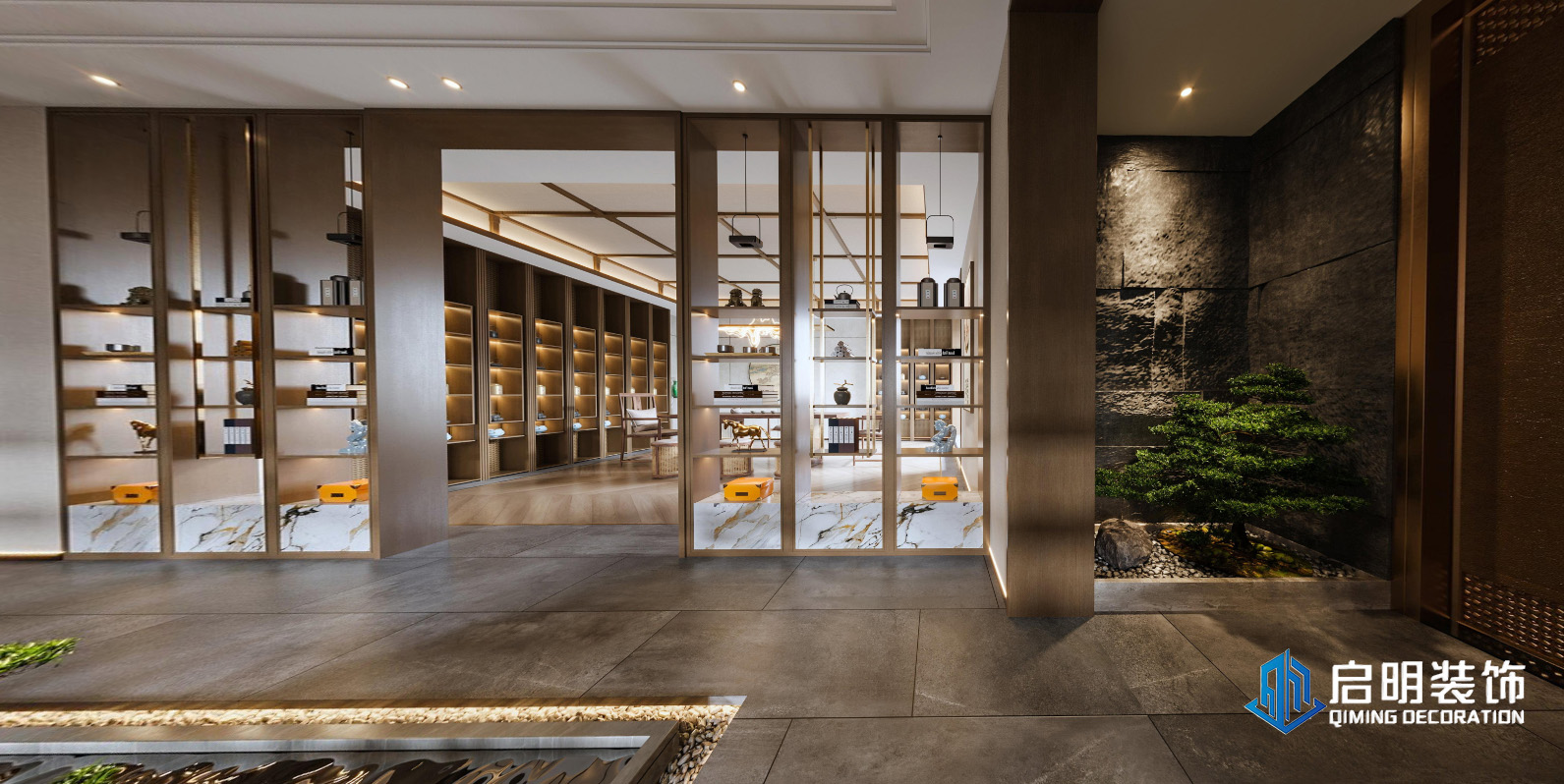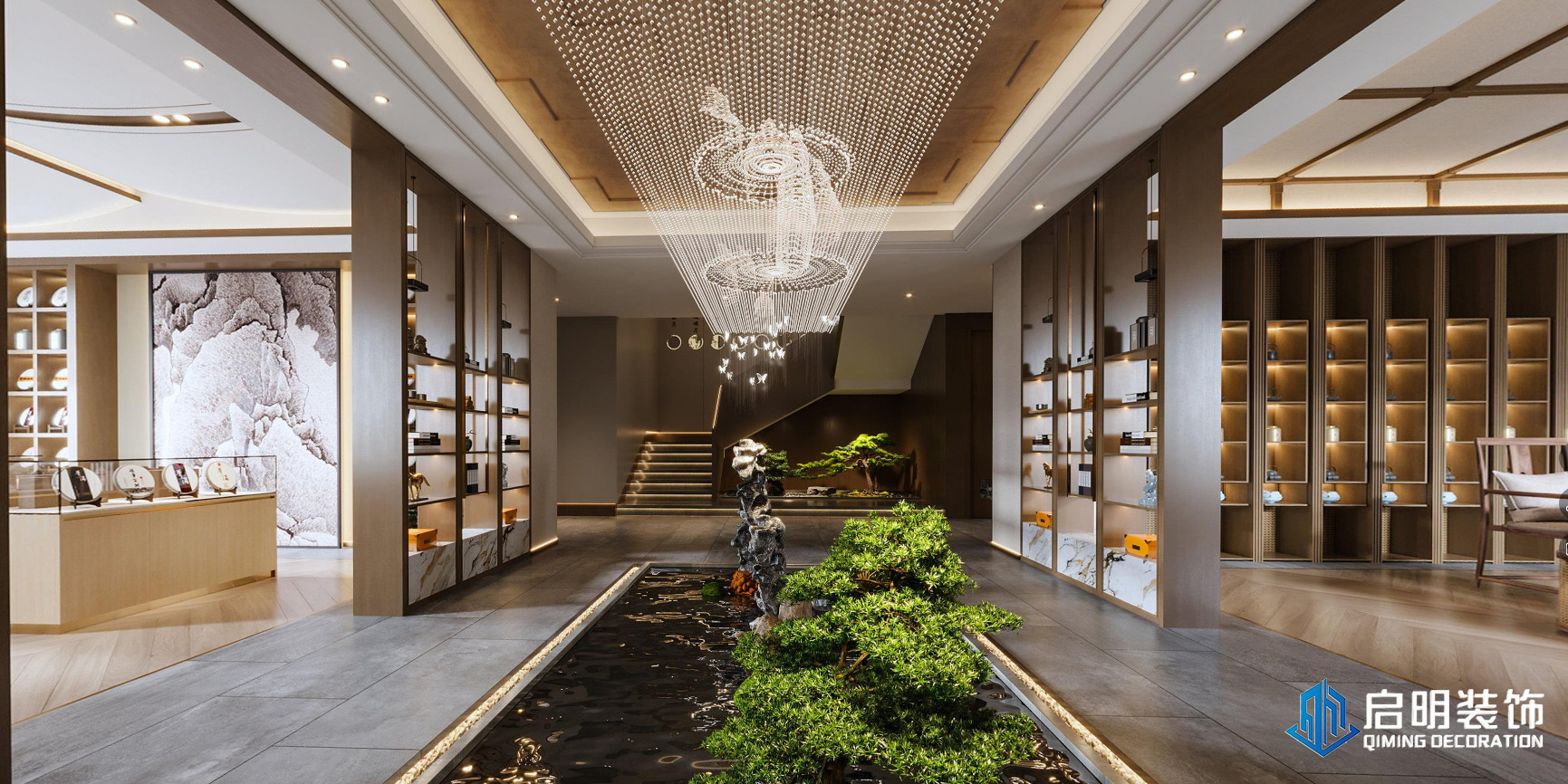 新中式会所的设计理念,是对传统东方美学的一次现代诠释,融合了豪华轻奢的风格,旨在打造一个既典雅又时尚的休闲空间。 门厅的设计尤为匠心独运,中心位置的水池和绿植成为了空间的灵魂。水池的流水声与绿植的自然气息,瞬间让人忘却城市的喧嚣,进入一个宁静的东方世界。 会所内部,木色继续扮演着主角,而细节处的金色线条和装饰,则透露出轻奢的韵味。这种色彩与材质的搭配,既体现了新中式的简洁大气,又不失奢华感。每一处设计都经过精心考量,从家具的选材到装饰品的摆放,无不展现出对品质生活的追求。