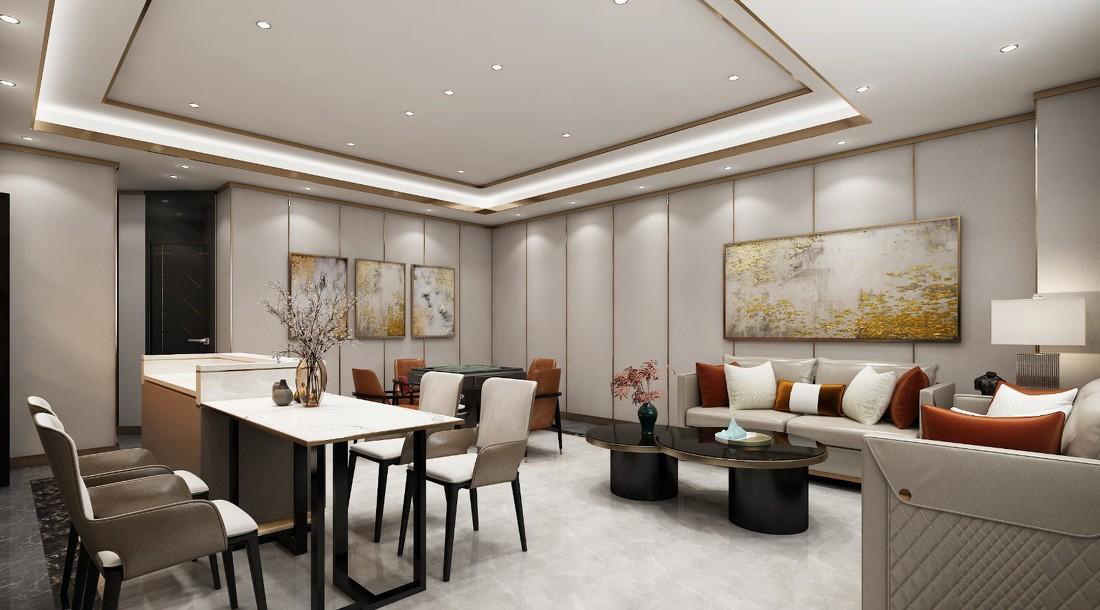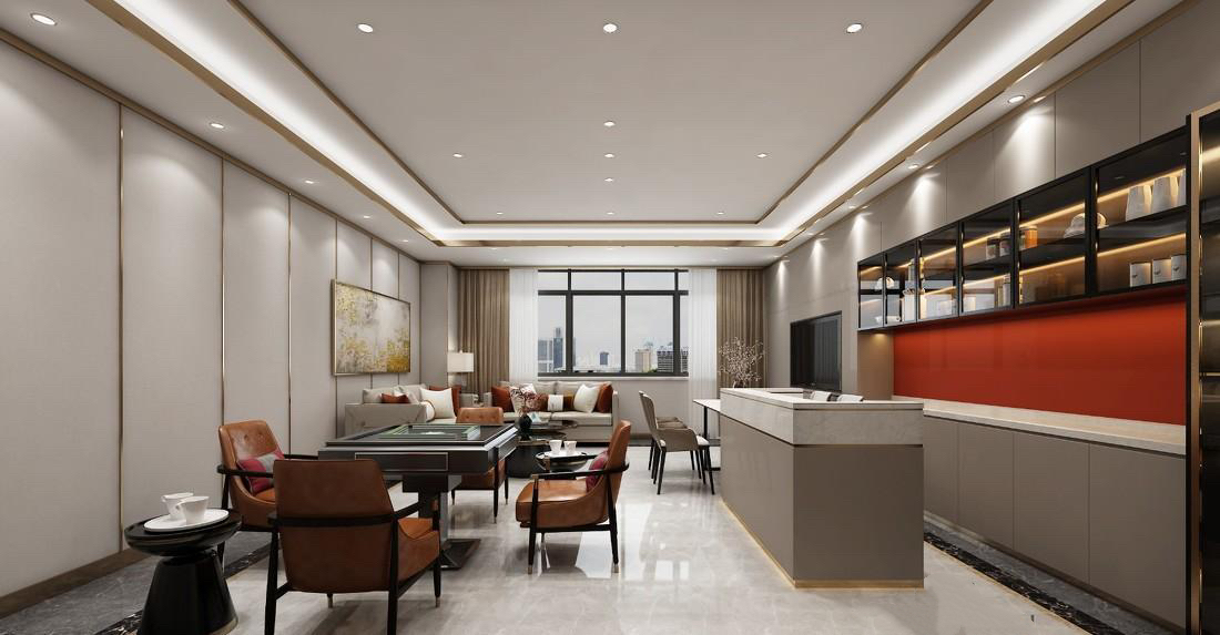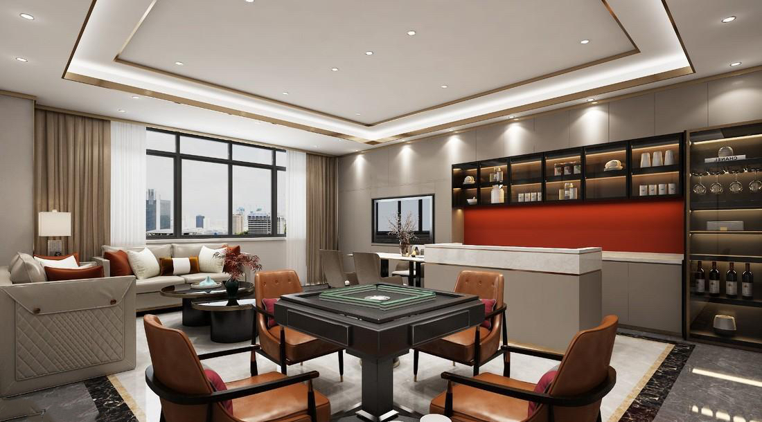 充分体现出中国传统文化的韵味和特色,为玩家营造一个舒适、优雅、安静的环境,让人们能够在其中享受到棋牌游戏的乐趣。 在装修风格上,中式风格棋牌馆注重了传统文化元素的运用,如中式家具、古典屏风、中国传统画作等,营造出古朴、典雅的氛围。此外,还用传统的中式色彩,如红色、绿色、蓝色等,让整个空间显得更加温馨、舒适。