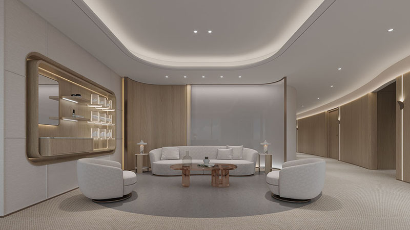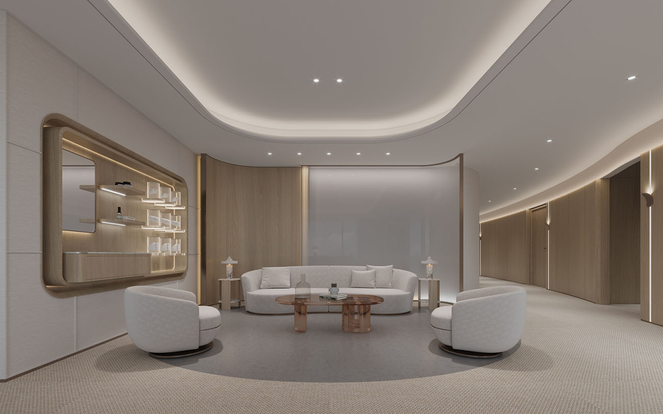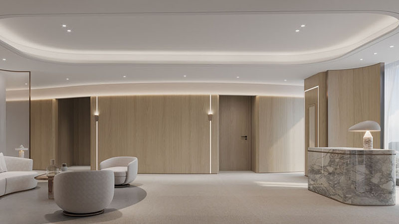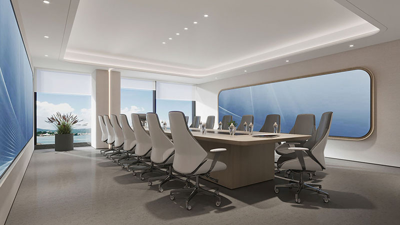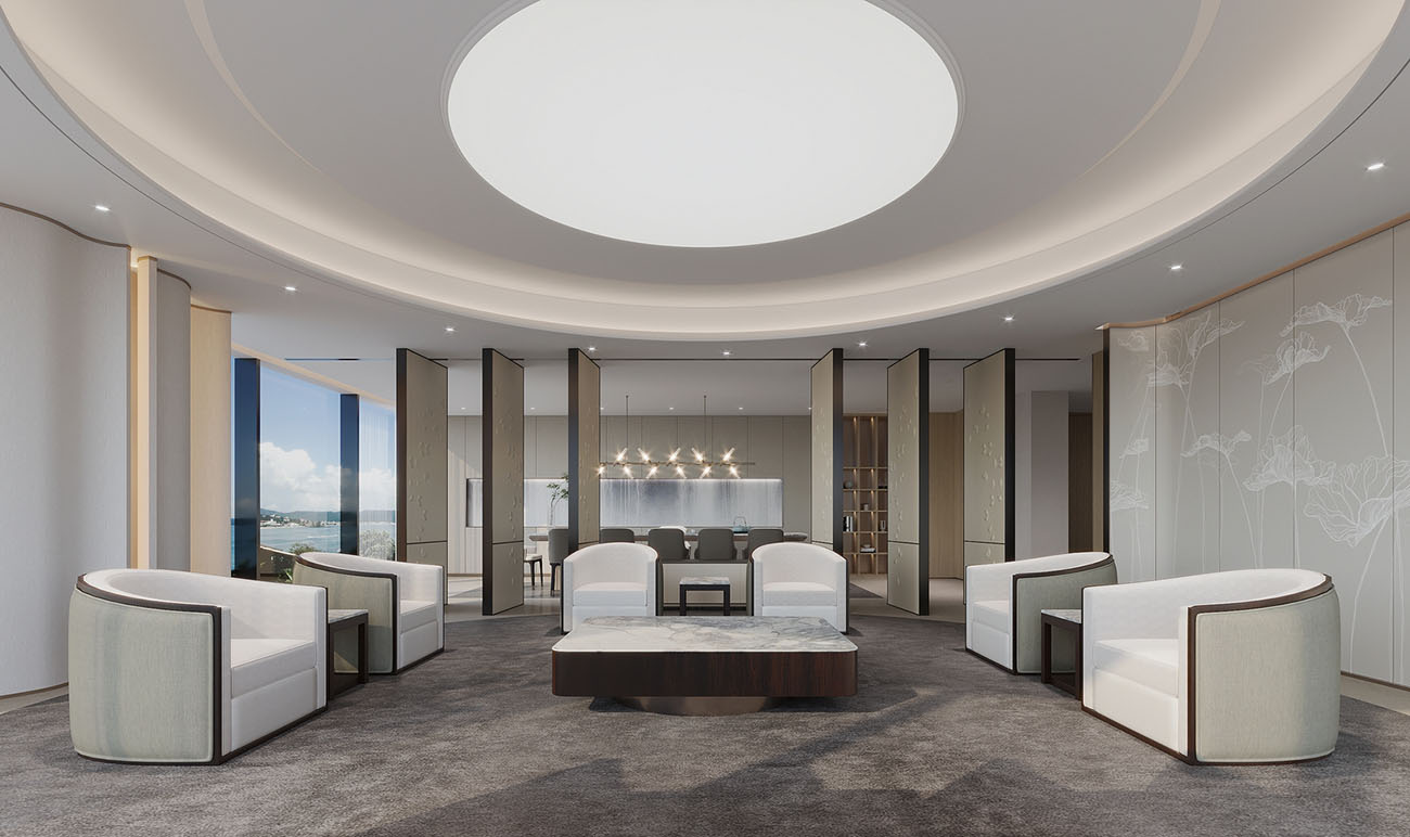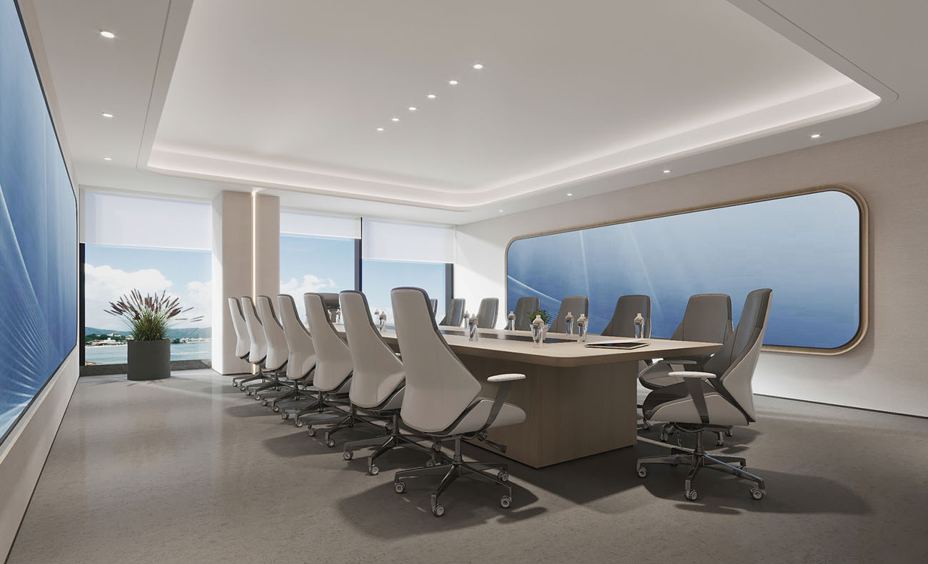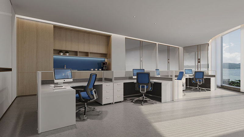 在这片宽敞而明亮的办公空间中,我们以开放式布局作为设计的基石,通过精心规划的动线设计,既保障了各部门的独立运作,又促进了团队间的流畅协作。这样的布局不仅提升了空间的使用效率,还极大地增强了团队成员之间的互动与交流。在空间的主色调搭配上,我们精心挑选了大型圆形灯具,它们不仅为室内带来了宁静与深邃的气息,同时也巧妙地体现了科技与未来的设计主题。墙面上的线性灯光设计,以其简洁而流畅的线条,进一步凸显了这一主题,让整个办公环境洋溢着浓厚的科技感和未来气息。