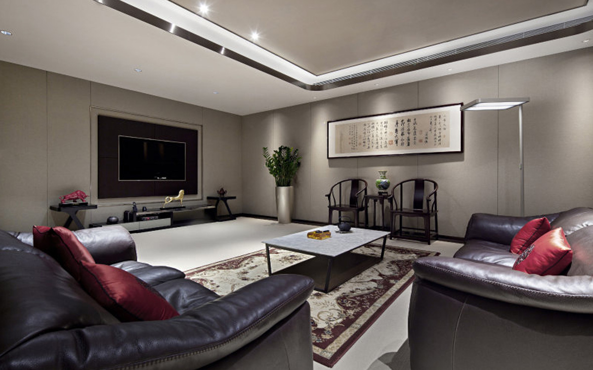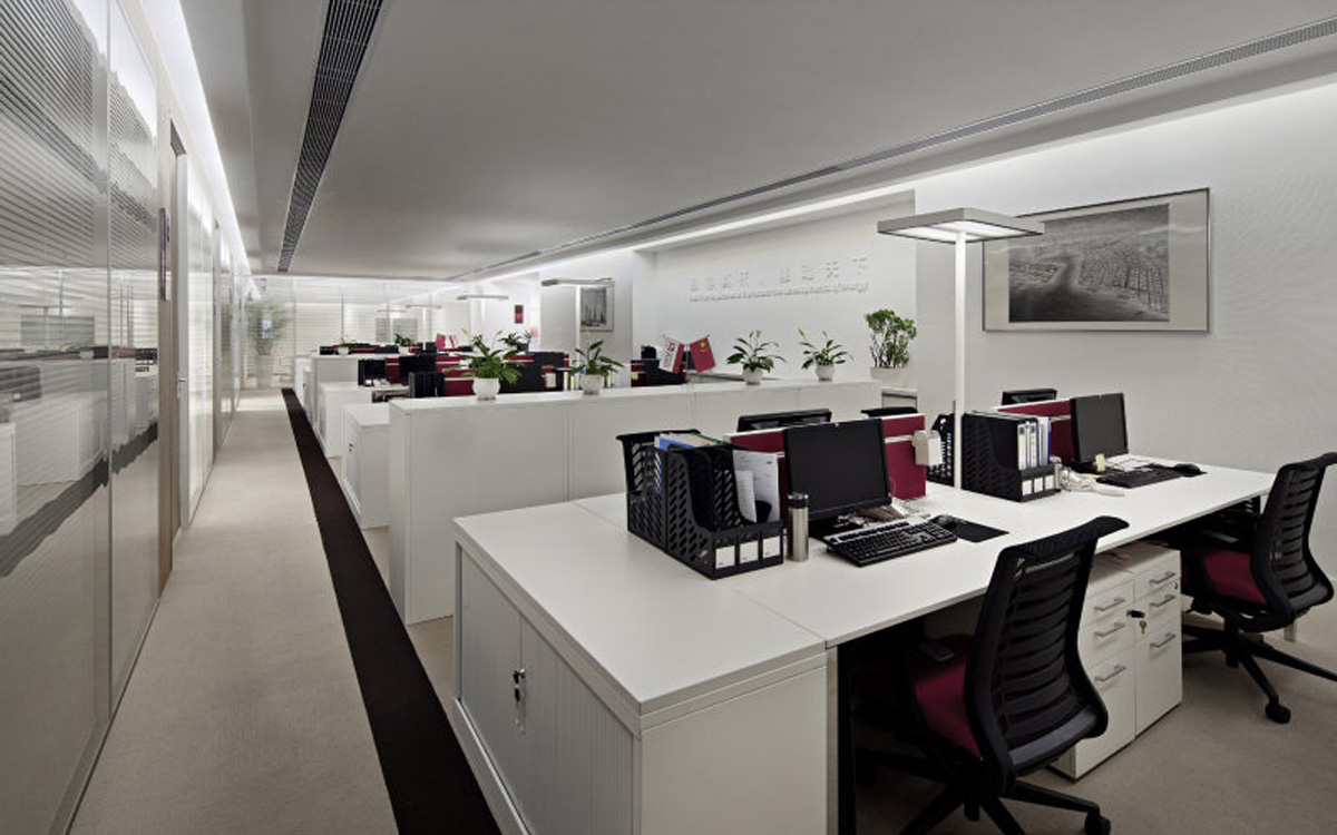 唯一有区别的就是该客户他们需要一个保密室,需要做到单独的监控和网络,并用实体砖墙,整体效果非常的现代,用红色作为点缀,黑色线条作为线面装饰,地面用浅色地砖。
