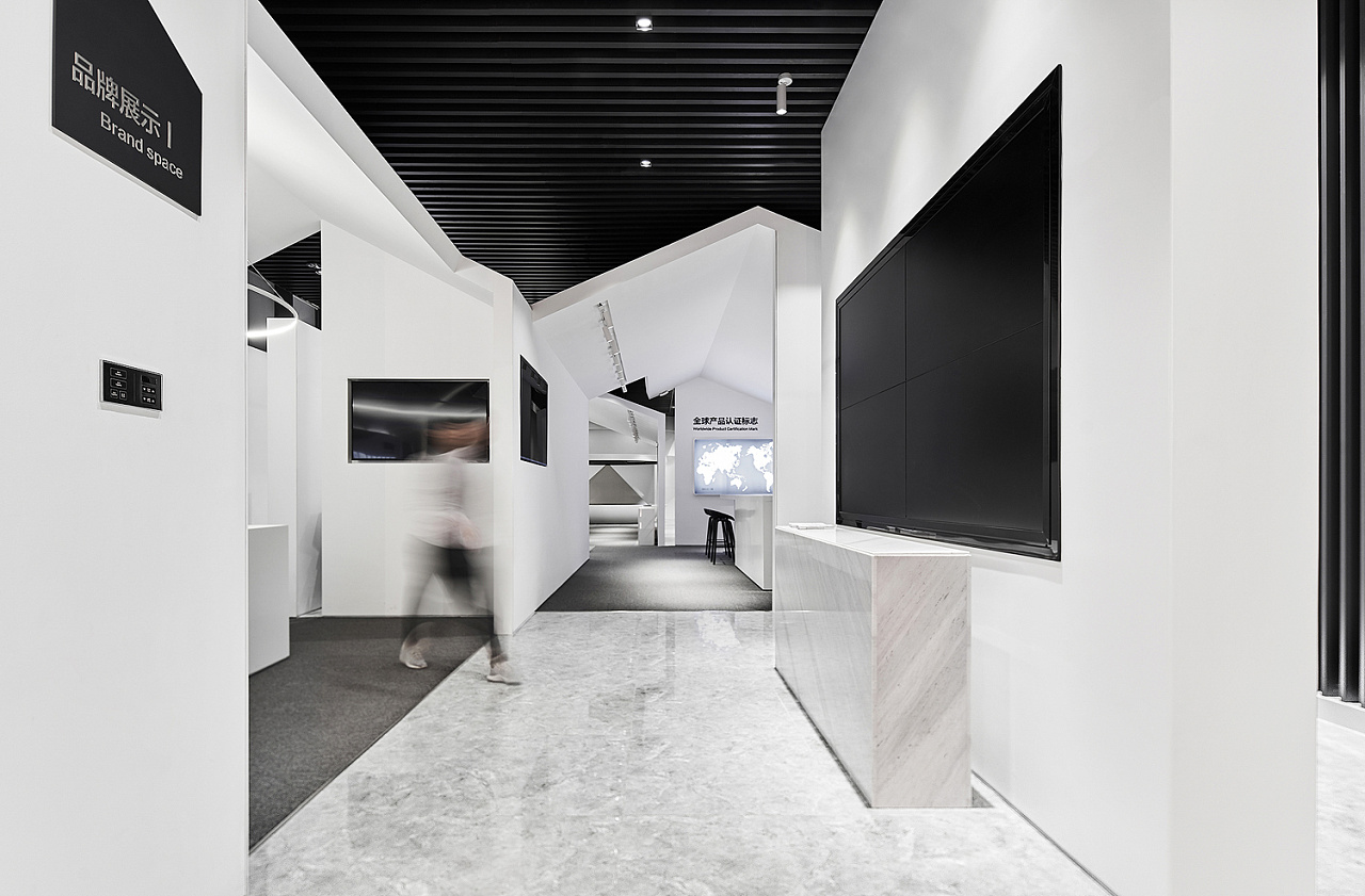 衣食住行是组成家的要素,同时也可以涵盖EMTEK的业务范围,在EMTEK展厅设计中,众舍试图以“家”的概念营造空间。品牌检测展品在四个不同的“家“中展示,在原本通敞空洞的办公楼间层植入了一个“错落有致,屋舍俨然“的展示空间