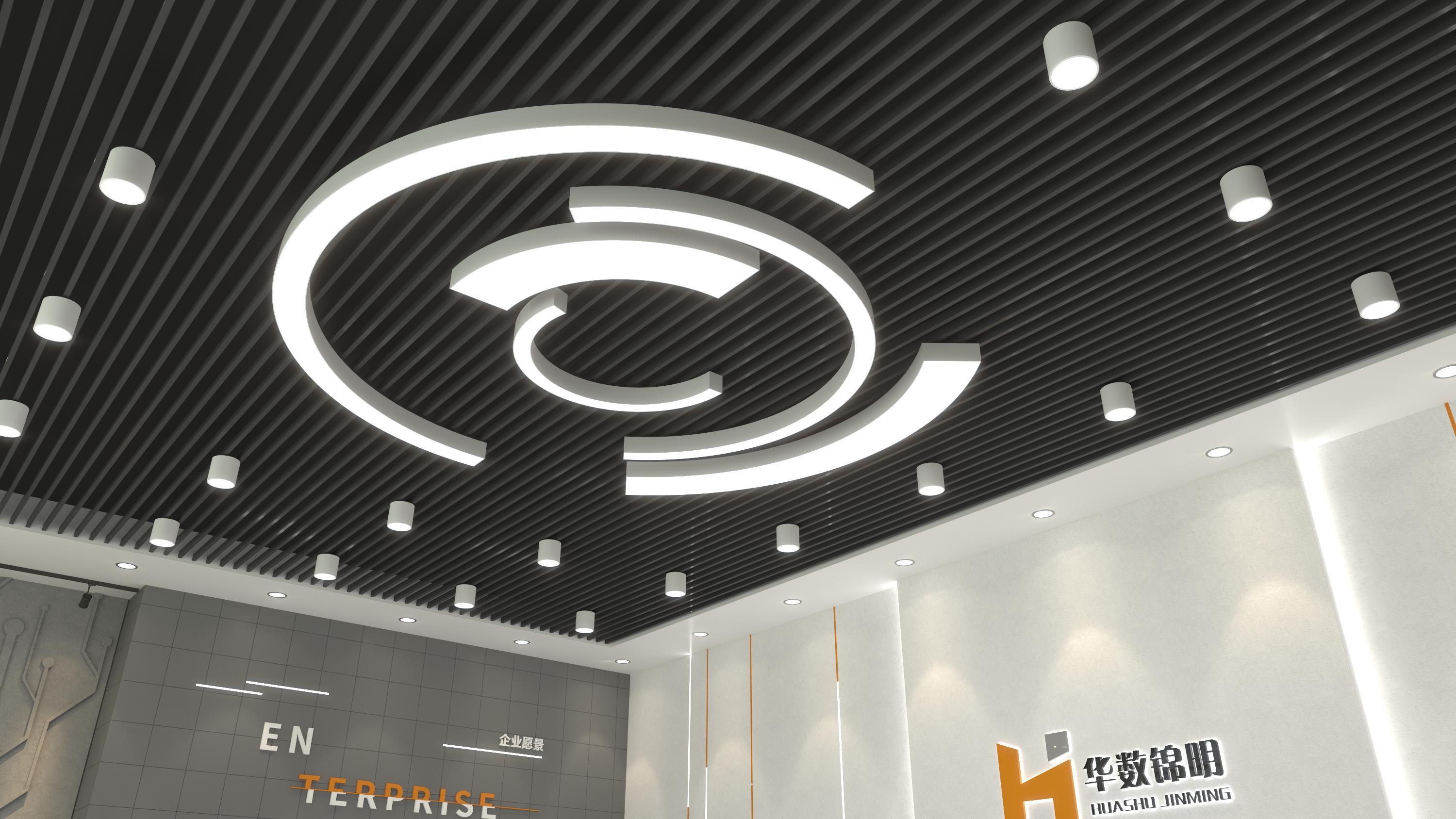创作思路:本案以华数锦明logo为创作核心元素,通过提炼其造形特点再抽象化处理,创作出字母“h”图形,将此图形运用到外立面,既能体现企业文化,同时具有后现代主义风格的设计,在视觉上也更有特点和视觉冲击力。