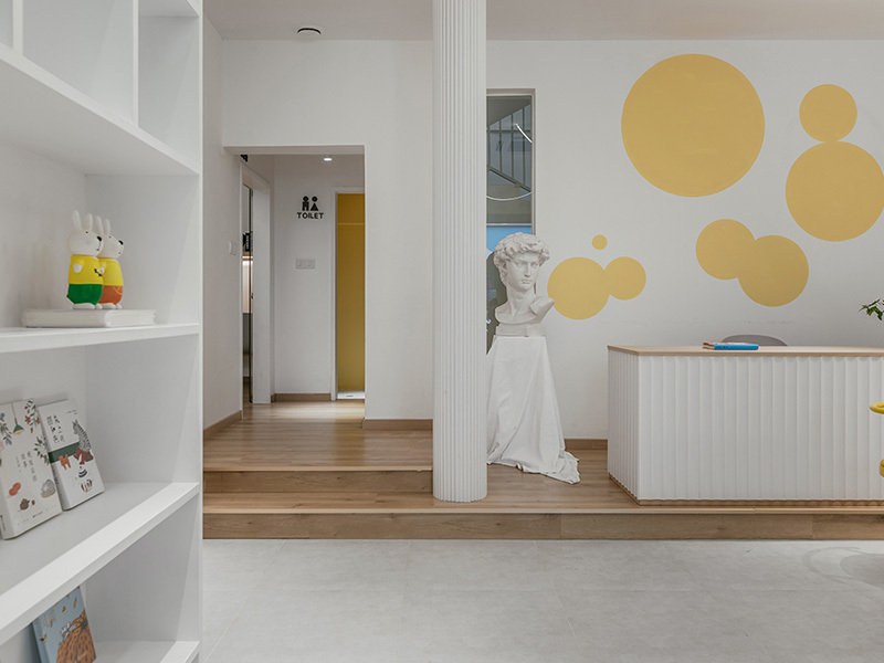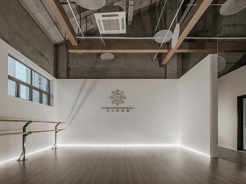 以「向日葵」为品牌概念衍生,设计师提取了明黄色调以及花瓣的序列感为设计灵感,希望创造一个品牌形象鲜明又充满童趣的儿童舞蹈、艺术教育空间。