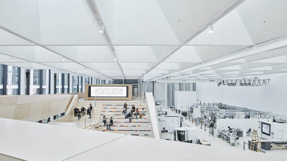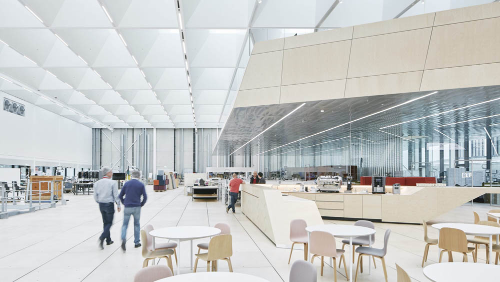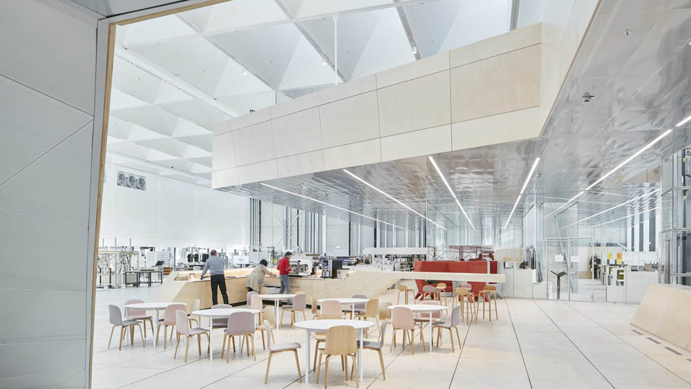 设计主要侧重于创造一个鼓励创造力的引人入胜和鼓舞人心的空间,而不是作为制造核心部分的物理生产过程。设计师的一个主要焦点是日光的整合,这使得水晶闪闪发光。