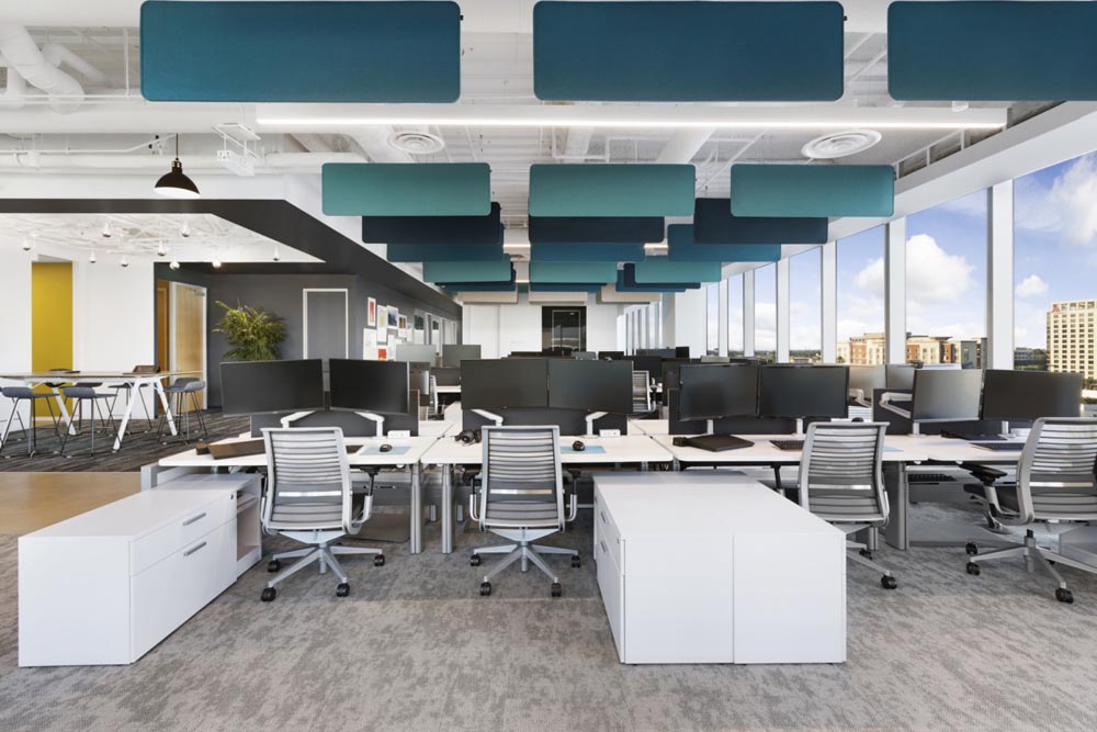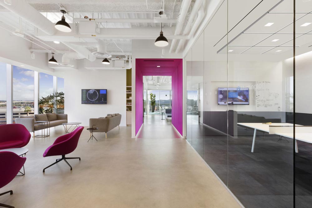 物联网、干净、精致、轻松、开放、透明,整个项目都使用了一个亮白色的底座托盘,利用客户强大的品牌标识和轻松的氛围,希望打造干净、精致、轻松的办公空间。