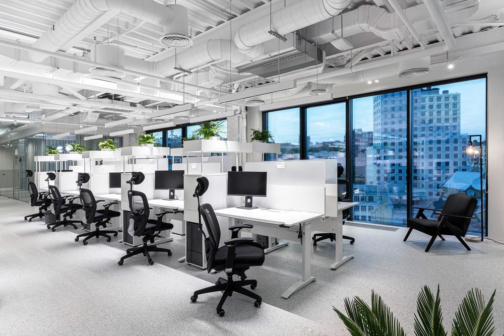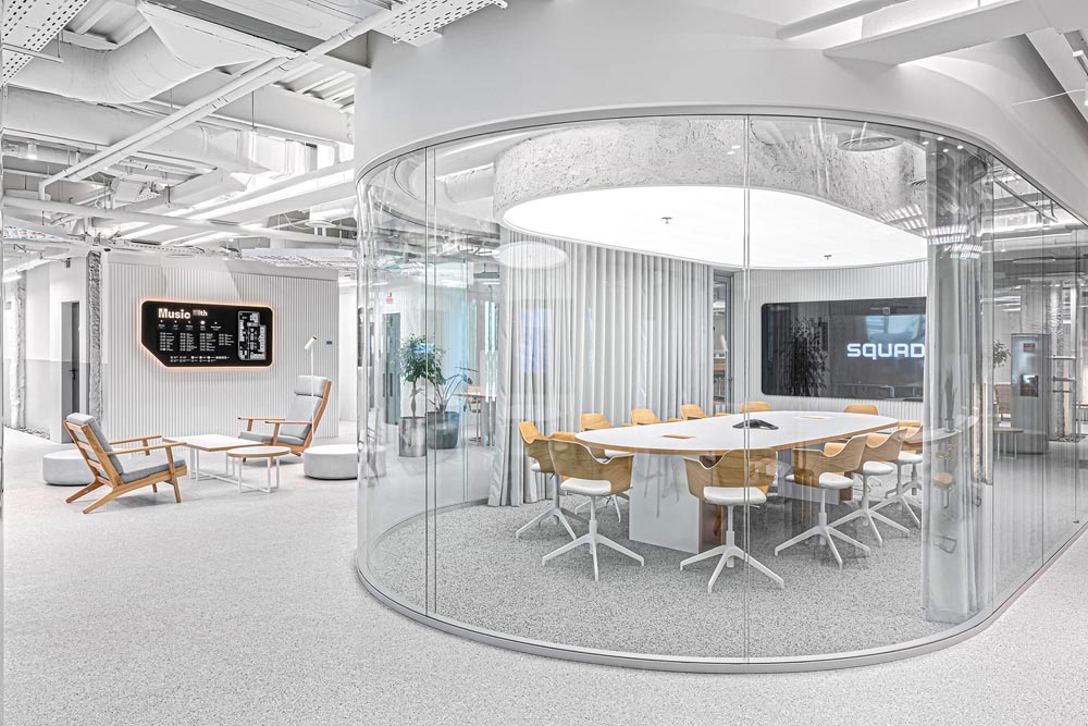 IT科技、厂房改造、生态工作系统、模块化家具、盒中盒、时尚优雅白色调,该项目的设计概念是创建一个可随时微调、具有超强适应性的生态工作系统,这样即使在不确定的疫情期间也能优化工作流程和效率。