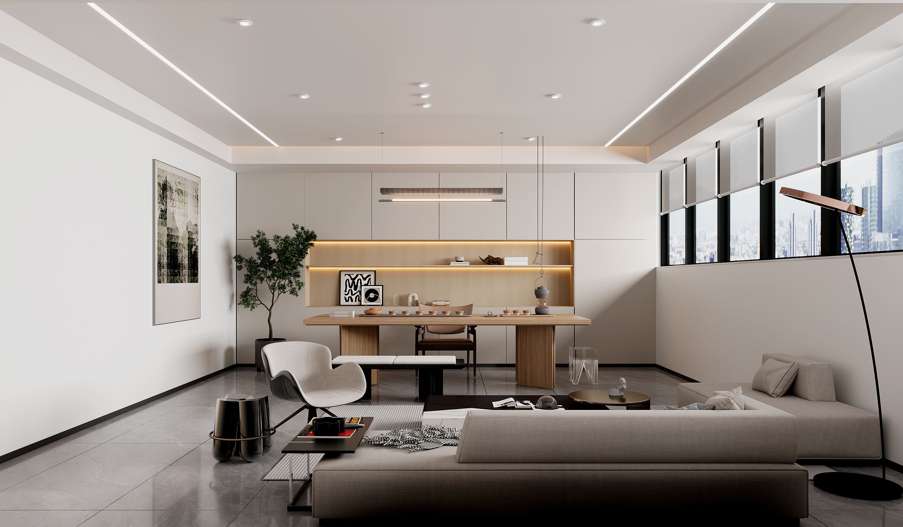 本案的办公室装修理念是:“简约而不简单,优雅而不失功能性。” 在设计办公室时,我们强调简约的风格,避免过多的装饰和复杂的线条,以便让员工专注于他们的工作。然而,简约并不意味着简单,我们选择了高质量的材料和精细的工艺,以确保办公室的舒适和耐用。 同时,我们也注重办公室的优雅性。我们相信,一个优雅的工作环境可以提高员工的工作满意度和创造力。因此,我们在办公室中使用了大量的自然元素,如木材和植物,以及中性的色调,如灰色和白色。 总的来说,优柯伊的办公室装修理念是:通过简约、优雅和功能性的结合,创造一个既能提高工作效率又能提升工作满意度的理想工作环境