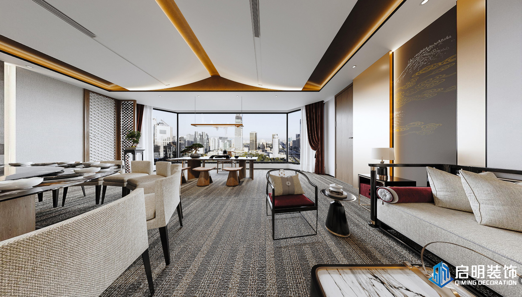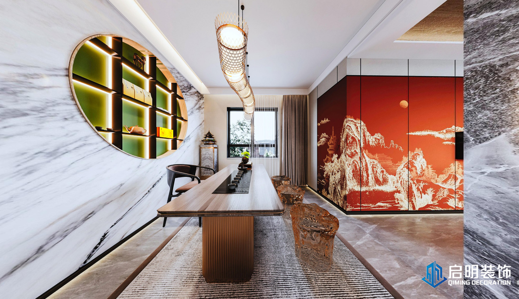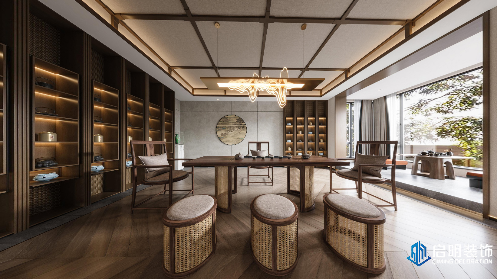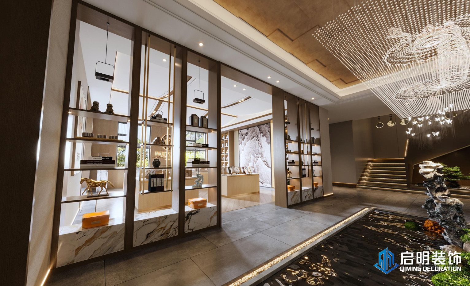 新中式会所的设计理念,是对传统东方美学的一次现代诠释,融合了豪华轻奢的风格,旨在打造一个既典雅又时尚的休闲空间。 门厅的设计尤为匠心独运,中心位置的水池和绿植成为了空间的灵魂。水池的流水声与绿植的自然气息,瞬间让人忘却城市的喧嚣,进入一个宁静的东方世界。 会所内部,木色继续扮演着主角,而细节处的金色线条和装饰,则透露出轻奢的韵味。这种色彩与材质的搭配,既体现了新中式的简洁大气,又不失奢华感。每一处设计都经过精心考量,从家具的选材到装饰品的摆放,无不展现出对品质生活的追求。