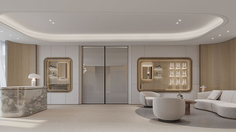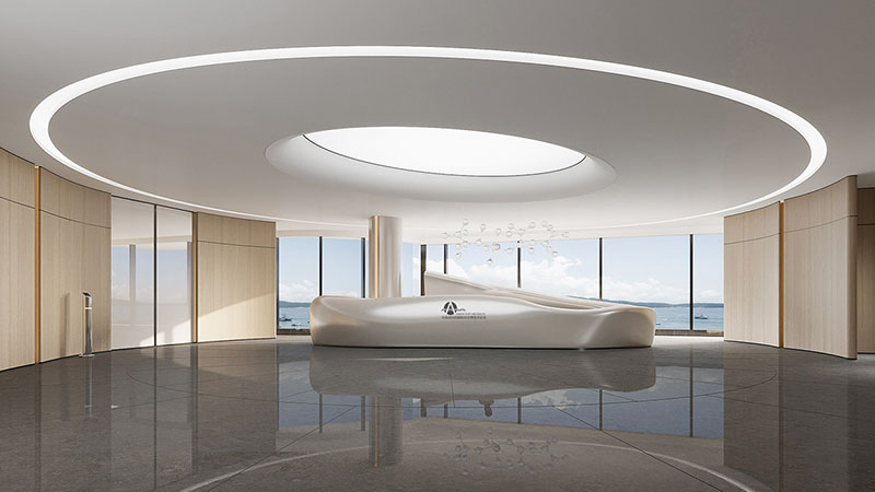 在这片宽敞而明亮的办公空间中,我们以开放式布局作为设计的基石,通过精心规划的动线设计,既保障了各部门的独立运作,又促进了团队间的流畅协作。这样的布局不仅提升了空间的使用效率,还极大地增强了团队成员之间的互动与交流。在空间的主色调搭配上,我们精心挑选了大型圆形灯具,它们不仅为室内带来了宁静与深邃的气息,同时也巧妙地体现了科技与未来的设计主题。墙面上的线性灯光设计,以其简洁而流畅的线条,进一步凸显了这一主题,让整个办公环境洋溢着浓厚的科技感和未来气息。